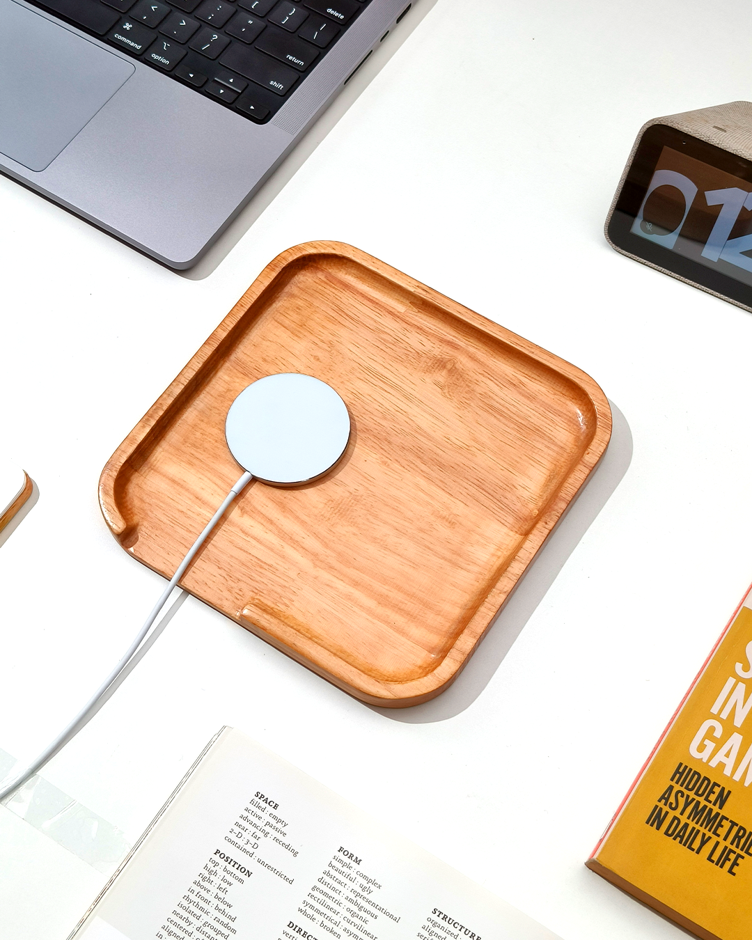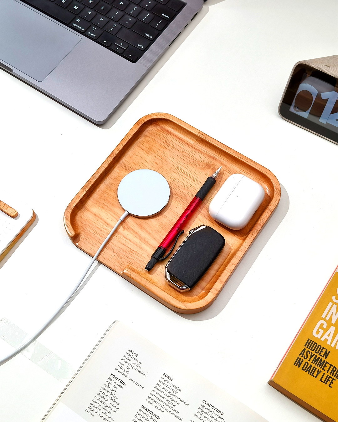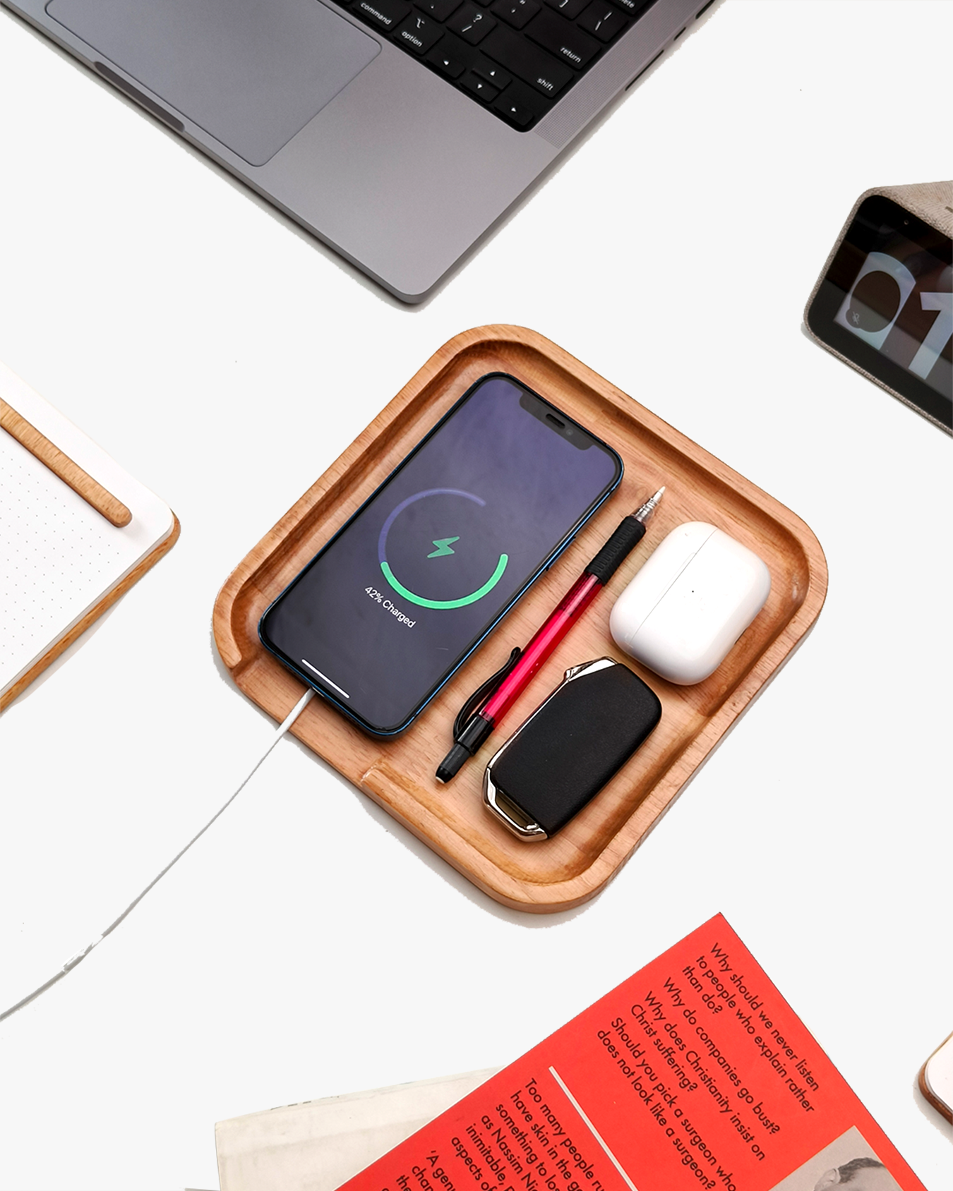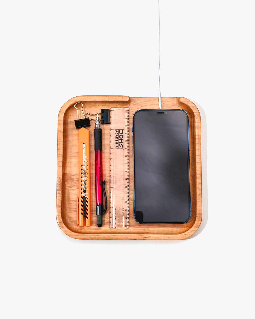 Whether it's your keys, wallet, or small accessories, this tray is designed to keep everything neatly in place with a dedicated space for your mobile device.
