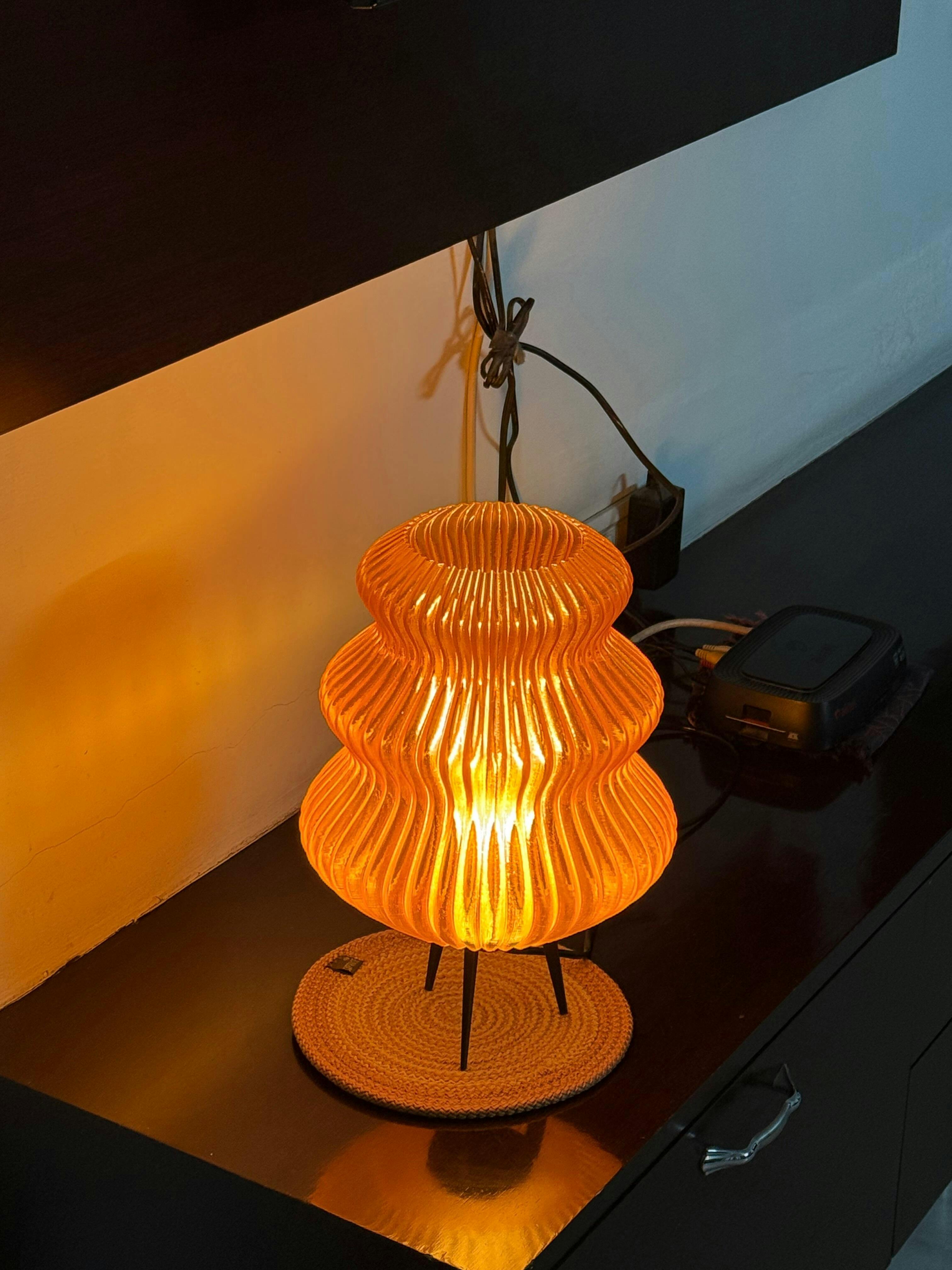 - Materials: The lamp shade is 3D printed with Polylactic Acid (PLA). PLA is a sturdy material derived from renewable resources, such as corn, sugar cane, and sugar beet.